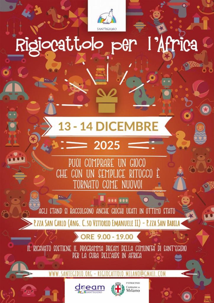 Sant’Egidio invita al Rigiocattolo per l’Africa 2025, l'iniziativa che vede il protagonismo dei bambini e degli adolescenti coinvolti durante l'anno nelle iniziative della Comunità e che a Milano è giunta alla 25^ edizione.