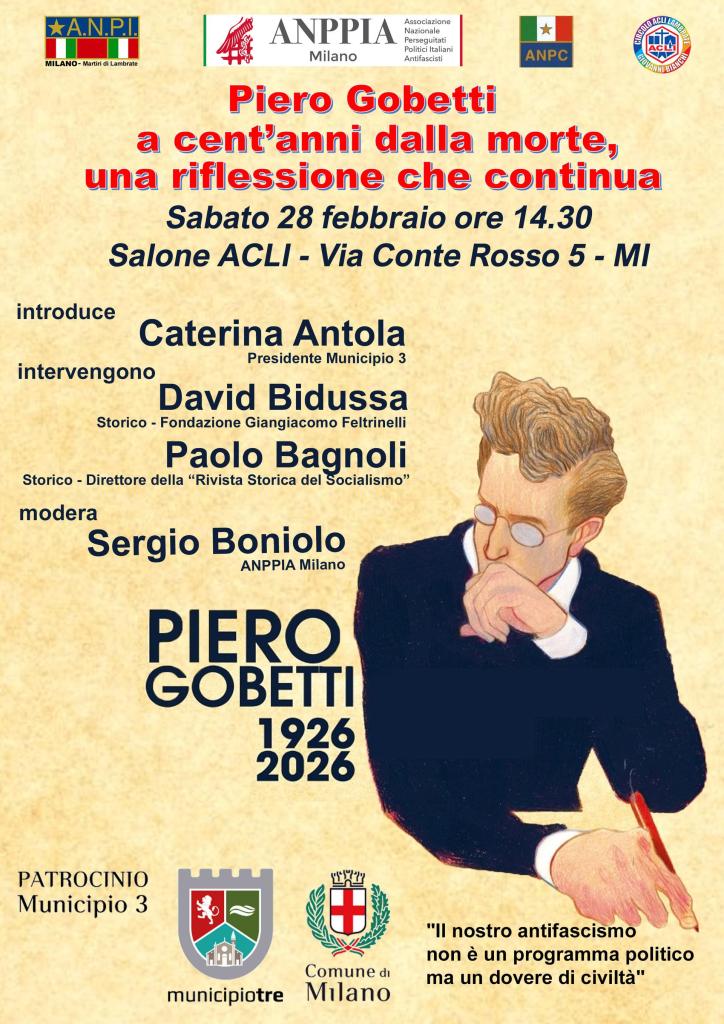alle ore 14.30 ricordiamo e approfondiamo il lucido e attuale pensiero di Piero Gobetti, deceduto 100 anni fa a soli 24 anni in conseguenza delle percosse subite dalle squadracce fasciste.